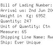| US Importer Round-the-world Logistics U S A Corp. 230-59 International Airport Center Boulev Ard, Suite 235, Jamaica,ny 11413,u.S.A.@@ | US Notify Party Round-the-world Logistics (U.S.A.) Corp. Tel:(214)2339288 Fax:(214)2578114 1200 Walnut Hill Lane,suite 3050, Irving, Tx, 75038, U.S.A. | Exporter Evergreen Logistics Corp. O/B Round-the-world Logistics (U.S.A.) Corp. Tel: (02)25083969 Fax: (02)25053677 5fl, No.170, Sec.2, Min-sheng @ | ![]() ![]() |