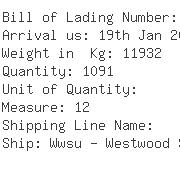 | US Importer De Well La Container Shipping 17800 Castleton St. Suite 308 City Of Industry Ca 91748 United St | US Notify Party De Well (La) Container Shipping 17800 Castleton St.Suite 308 City O City Of Industry Ca 91748 United St | Exporter De Well Container Shipping Corp. 1568# Gangcheng Rd,shanghai,china Shanghai 31 China | ![]() ![]() |