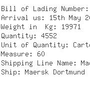 | US Importer Dhl Global Forwarding 540 Airport South Parkway Atlanta, A. 30349 Attn: Sharon Woods Ph: 678-479-275 770-996-8810 | US Notify Party Dhl Global Forwarding 540 Airport South Parkway Atlanta, A. 30349 Attn: Sharon Woods Ph: 678-479-275 770-996-8810 | Exporter Danmar Lines Ltd. C/O Taq Int'l Cargo Services (Pvt) Ltd. 233-a/2 Aamir Trade Center Shahrah-e-quaideen 92-214541301 | ![]() ![]() |