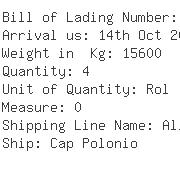 | US Importer Abc Cargo Logistic Sa Carrera Industrial Fontibon Bogota- Colombia Ctc: Diana Castro | US Notify Party Abc Cargo Logistic S.A. Carrera 97 No. 24c-23 Bodega 22 Muelle Industrial Fontibon Bogota - | Exporter Agencia Naviera De Norteamerica S.A. De C.V. Francisco G. Sada 2944-9, Deportivo | ![]() ![]() |