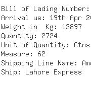 | US Importer Ata Freight Line Ltd Cargo Building 75, Suite 216 Jamaica, Ny 11430 Tel:718-995-3855 Fax:718-995-4150 | US Notify Party Ata Freight Line, Ltd. Cargo Building 75, Suite 216 Jamaica, Ny 11430 Tel:718-995-3855 Fax:718-995-4150 | Exporter Anchor Logistics (Pvt) Ltd Al-rahim Tower 11th Floor Office No.1104, I,i Chundrigar Road, Karachi Tel:92-21-2442507 / 2429411 | ![]() ![]() |