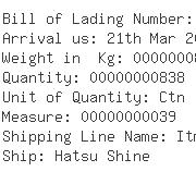 | US Importer Mitsui-soko Usa Inc Atlanta Office Suite 200, 1280 Lakes Parkway Lawrenceville, Ga 30043, U.S.A. Tel:1-770-9314400 Fax:1-770-9313700 | US Notify Party Mitsui-soko(U.S.A.)inc. Atlanta Office Suite 200, 1280 Lakes Parkway Lawrenceville, Ga 30043, U.S.A. Tel:1-770-9314400 Fax:1-770-9313700 | Exporter Mitex Multimodal Express Ltd. Unit 06-10, 10/F., Tower Ii, Ever Gain Plaza, 88 Container Port Road, Kwai Chung, N.T., Hong Kong | ![]() ![]() |