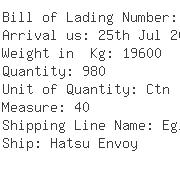 | US Importer Emo Trans Georgia Inc Atl 20 Southwoods Parkway,suite 500 Atlanta, Ga 30354 Usa Tel:404-7611956 Fax:404-7614232 | US Notify Party Emo Trans Georgia Inc.(Atl) 20 Southwoods Parkway,suite 500 Atlanta, Ga 30354 Usa Tel:404-7611956 Fax:404-7614232 | Exporter Gulf Agency Company (Hk) Ltd O/B Cargogulf Inc 10f Grand Centre, 8 Humphreys Avenue Tsimshatsui, Kowloon, Hong Kong | ![]() ![]() |