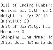 | Marks and No. Brasil Trablin; Miller; Mg 5r 2; 1 1 4 X 1 4; Houston; N.W. 1.085,0kg; 01-60; -; Total Number Of; Container:; (In Words); Three 20'; No Marks; No Marks; No Marks; No Marks; No Marks; No Marks; Brasil Trablin; Miller; Mg 5r 2; 1 1 4 X 1 4; Houston; N.W. 1. |