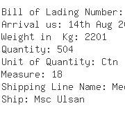 | US Importer Ecu Line Canada Inc 1804 Alstep Drive Unit No.2 Mississauga,ont L5s 1w1 Canada 905-677-8334 | US Notify Party Same As Consignee Tel:1 905 677 83 34 Fax:1 905 677 12 55 905-677-8334 | Exporter Allcargo Global Logistics Limited Diamond Square 5th Floor Cst Road Kalina Santacruz (East) Mumbai 400 098 91-2266798100 | ![]() ![]() |