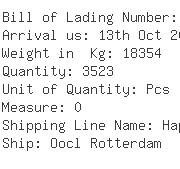| US Importer Caliamerica Logistics Inc 161 W, Victoria Street, Suite 220, Long Beach, Ca 90805 Tel 001 310 762 2676 Fax 001 310 762 2284 | US Notify Party Same As Above N/A | Exporter Atlantic Pacific Container Line 44, Contractor Building, 15, Vaju Kotak Marg, Ballard Estate Mumbai-400 038, India. Tele 226773 | ![]() ![]() |