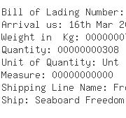 | US Importer Scanam Transport Usa Inc 768 S.Central Avenue,suite 200 Atlanta,ga 30354 Tel:1-404-7681717 Fax:1-404-7681712 Ctc:peter Hansen | US Notify Party Scanam Transport(Usa) Inc. 768 S.Central Avenue,suite 200 Atlanta,ga 30354 Tel:1-404-7681717 Fax:1-404-7681712 Ctc:peter Hansen | Exporter Scan Logistics Shanghai Representative Office 27 Floor,finance Square 333 Jiu Jiang Road Shanghai 200001 P.R.China Tel:21-63501666 | ![]() ![]() |