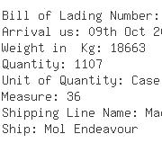 | 1 X 40ft Hc Container Shippers Load And Count 3 Cases Soil Testing Equipment 411 Kgs / 0.640 191 Cases - 188 Cases Scotch Whisky / 3 Packages Advertising Material 1505 Kgs / 3.500 8064 Units Toner Cartridges (Packed On 3 Pallets) 469 Kgs / 3.89 528 Carton |